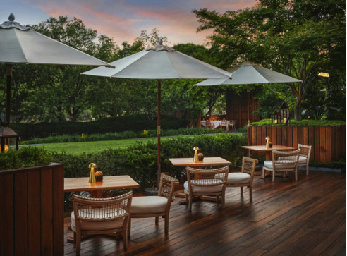 Outdoor garden at Il Ristorante — Niko Romito wins one Michelin star in the latest edition of The Michelin Guide Beijing.